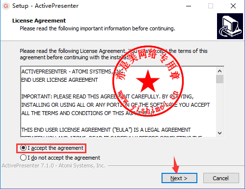 下载亦是美网络小编提供的ActivePresenter Pro v7.1.0中文版+注册文件压缩包,找到ActivePresenter_v7.1.0_setup.exe双击安装,